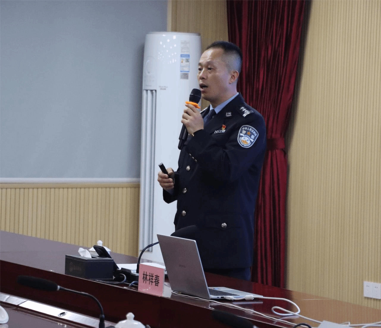 为弘扬劳模精神,引导青年学子坚定理想信念、勇担使命,4月21日下午,我校开展“扬长避短 勇担使命”专题讲座,福州市劳动模范、马尾区亭江镇派出所林祥春副所长应邀莅校主讲。校团委党支部、工会党支部党员,校团委学生干部及“青马班”学员到场聆听学习。